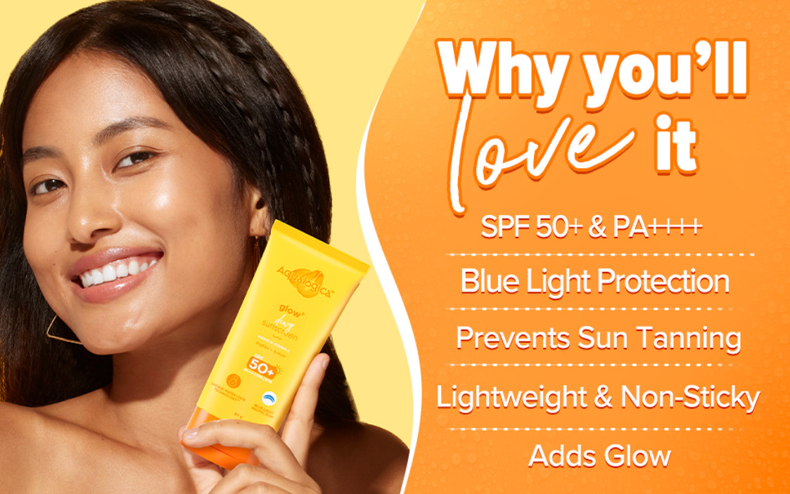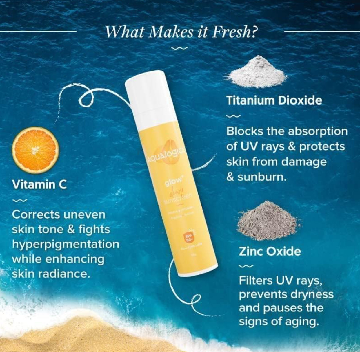 Aqualogica Glow+ Dewy Sunscreen - 50g SPF 50 PA++++ for UVA/B & Blue Light Protection | Fragrance-Free & Color-Free | For Glowing & Well Protected Skin