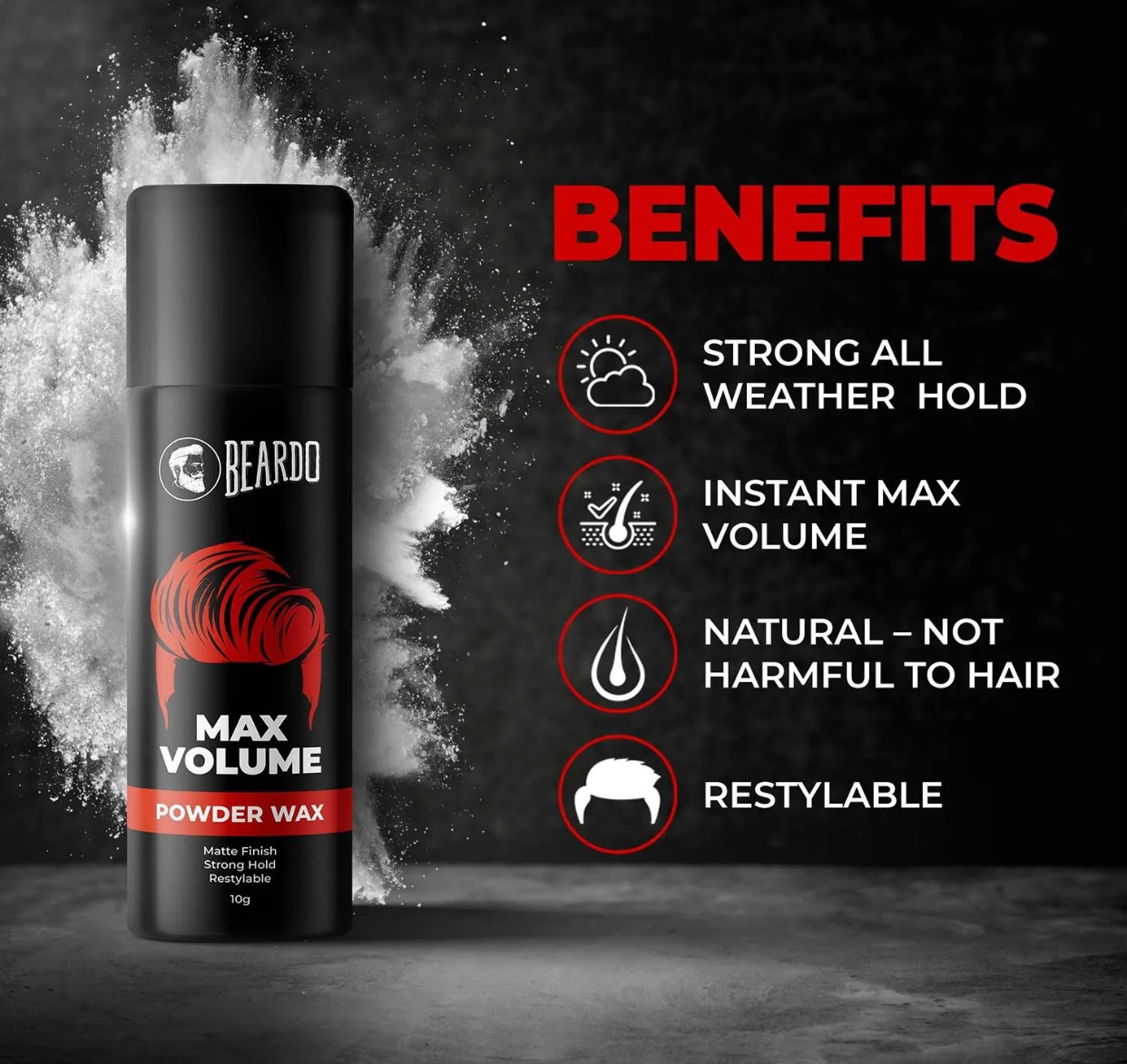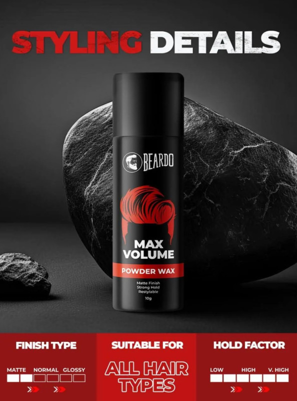 Beardo Max Volume Powder Wax 10 GM | Matte Finish | Strong Hold | Restylable | Hair Styling Wax | Hair Wax Powder for Men