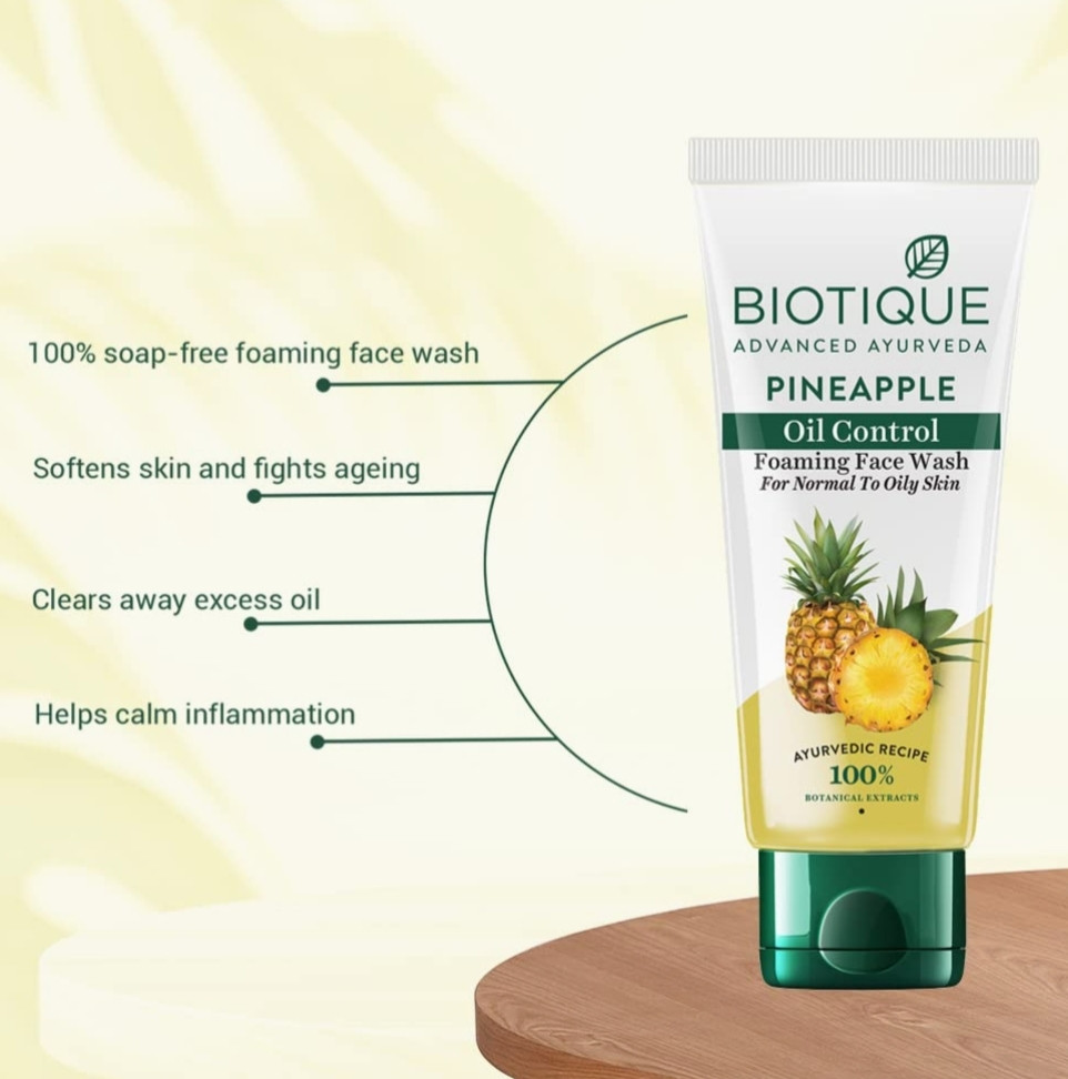 Biotique Pineapple Oil Control Foaming Face Wash | Hydrates dry skin | Eliminates Excess Oil | Evens Skin Tone | 100% Botanical Extracts | Suitable for All Skin Types | 100ml