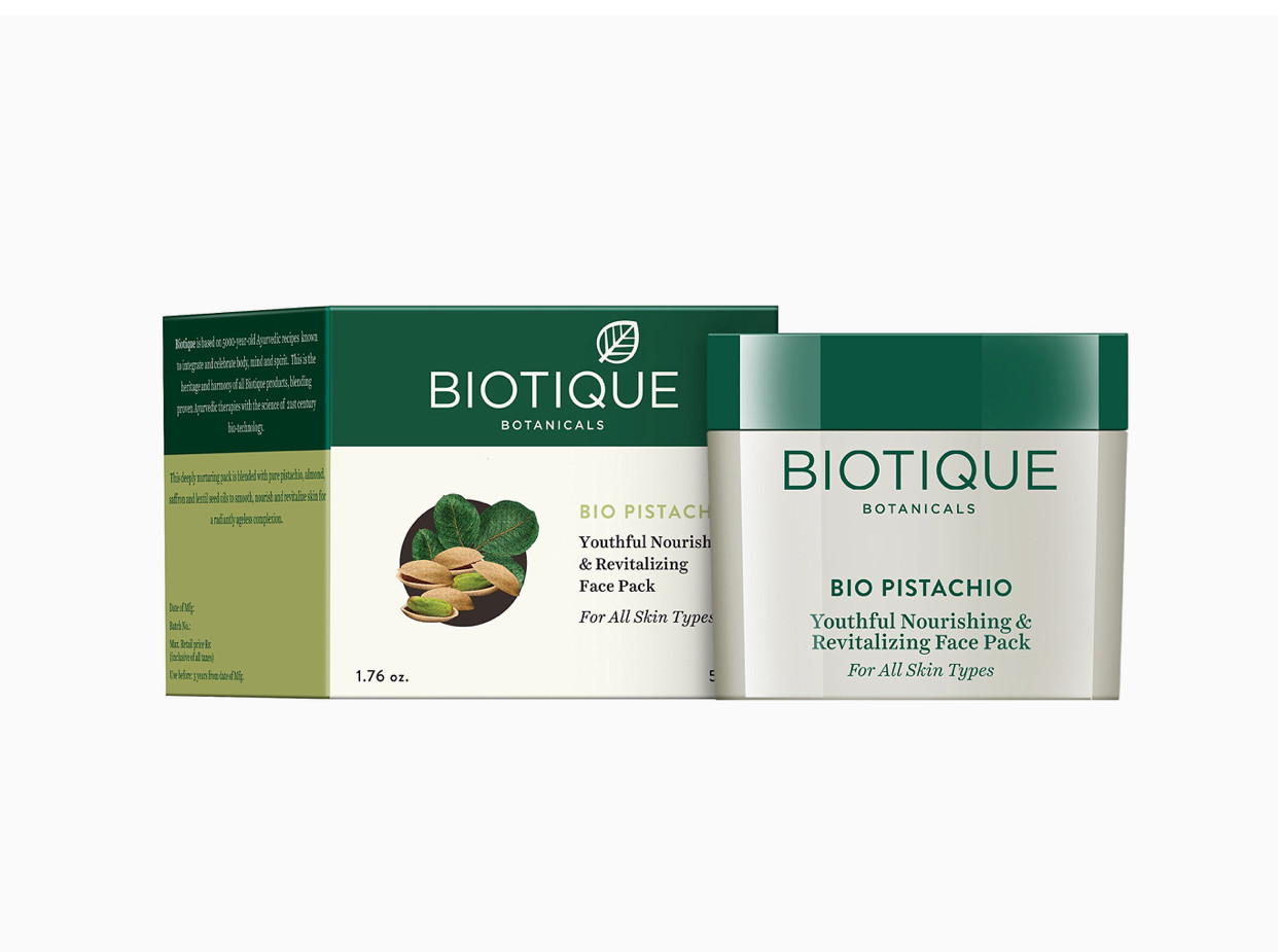 Biotique Pistachio Youthful Nourishing Face Pack for All Skin Types, 50gm
