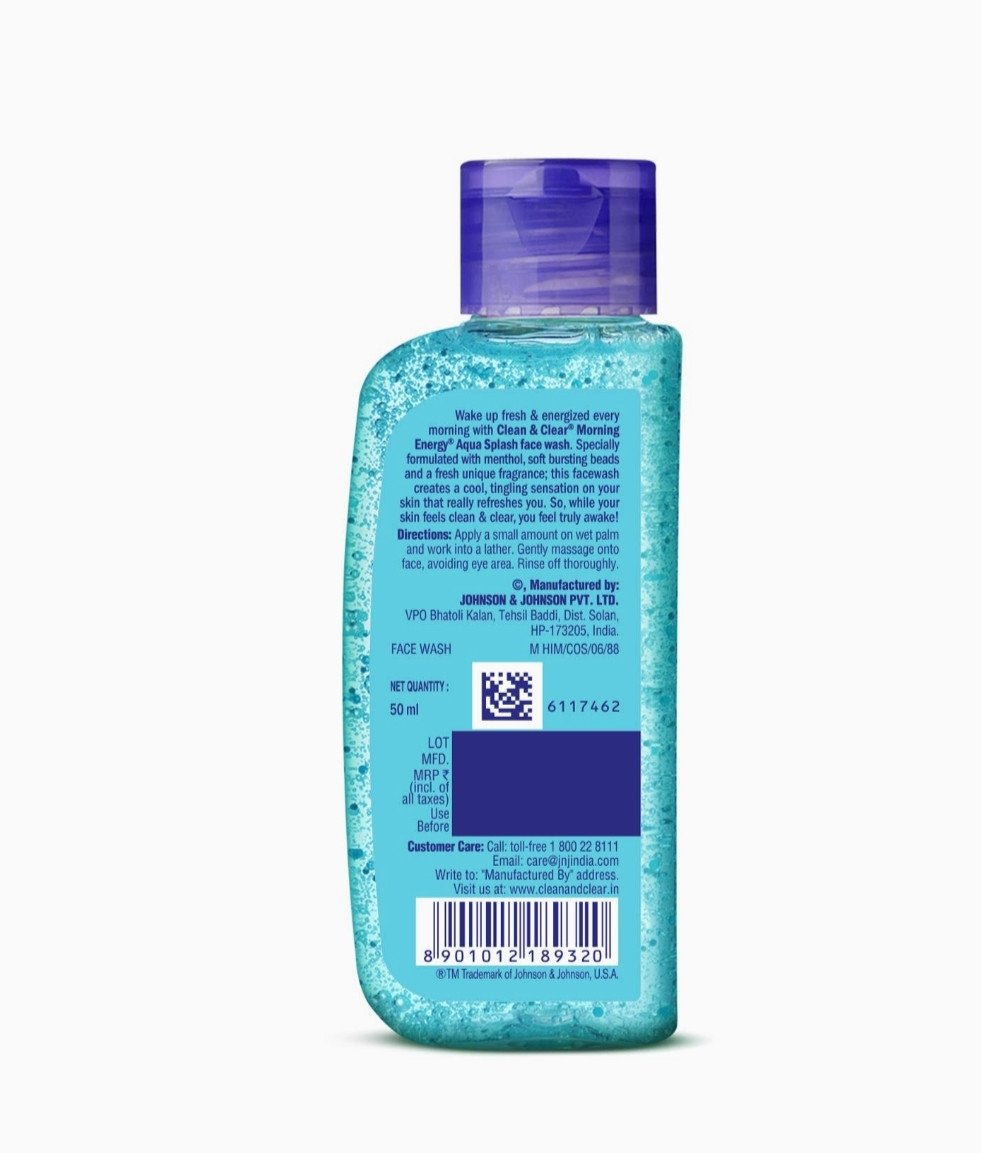 Clean & Clear Morning Energy Aqua Splash Face Wash, Blue, 50 ml