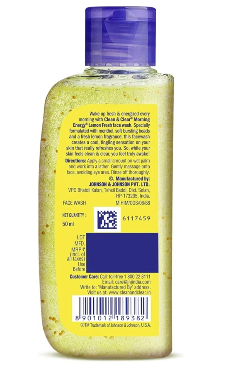 Clean & Clear Morning Energy Lemon Fresh Face Wash, Yellow, 50 ml