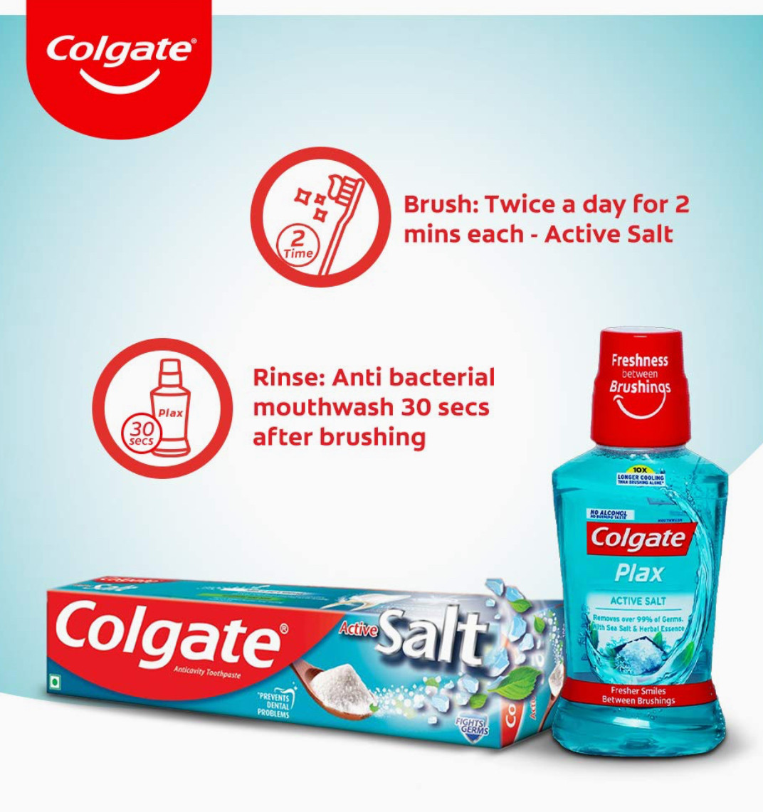 Colgate Toothpaste Active Salt - 100 g (Salt) - Freshens, Removes Plaque, Bad Breath