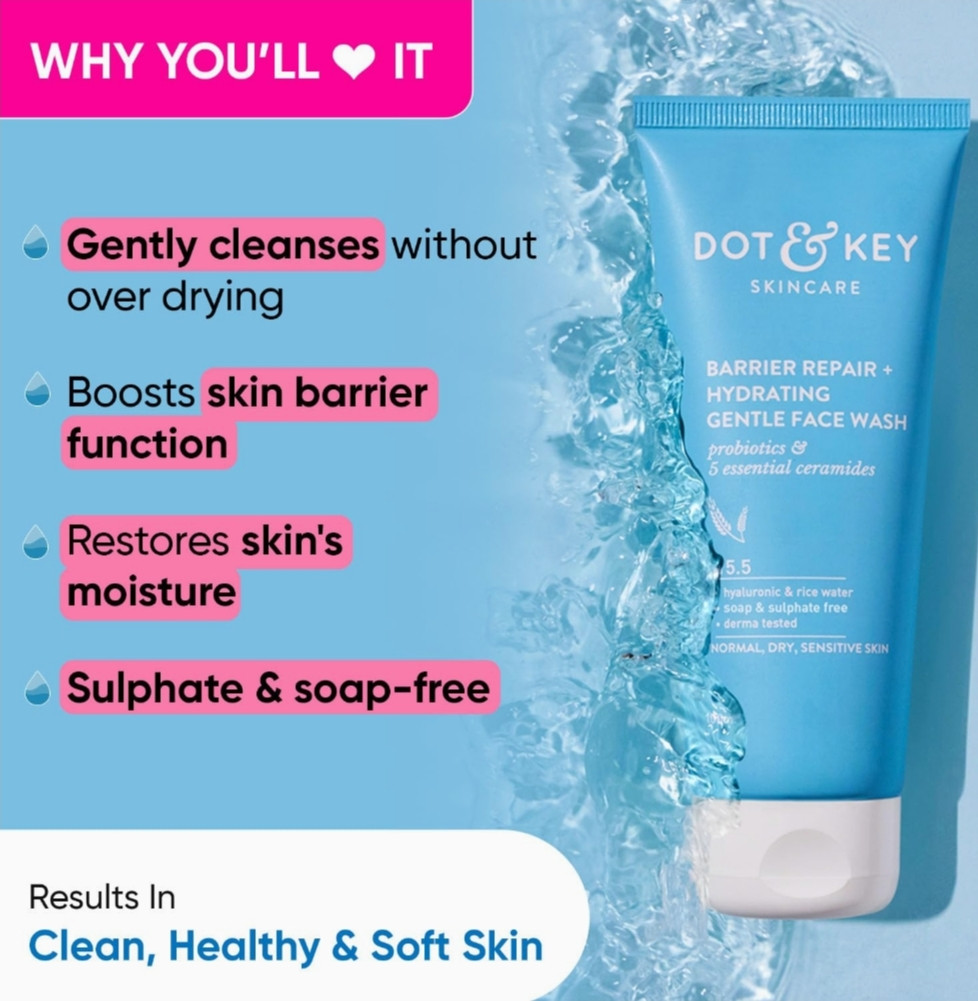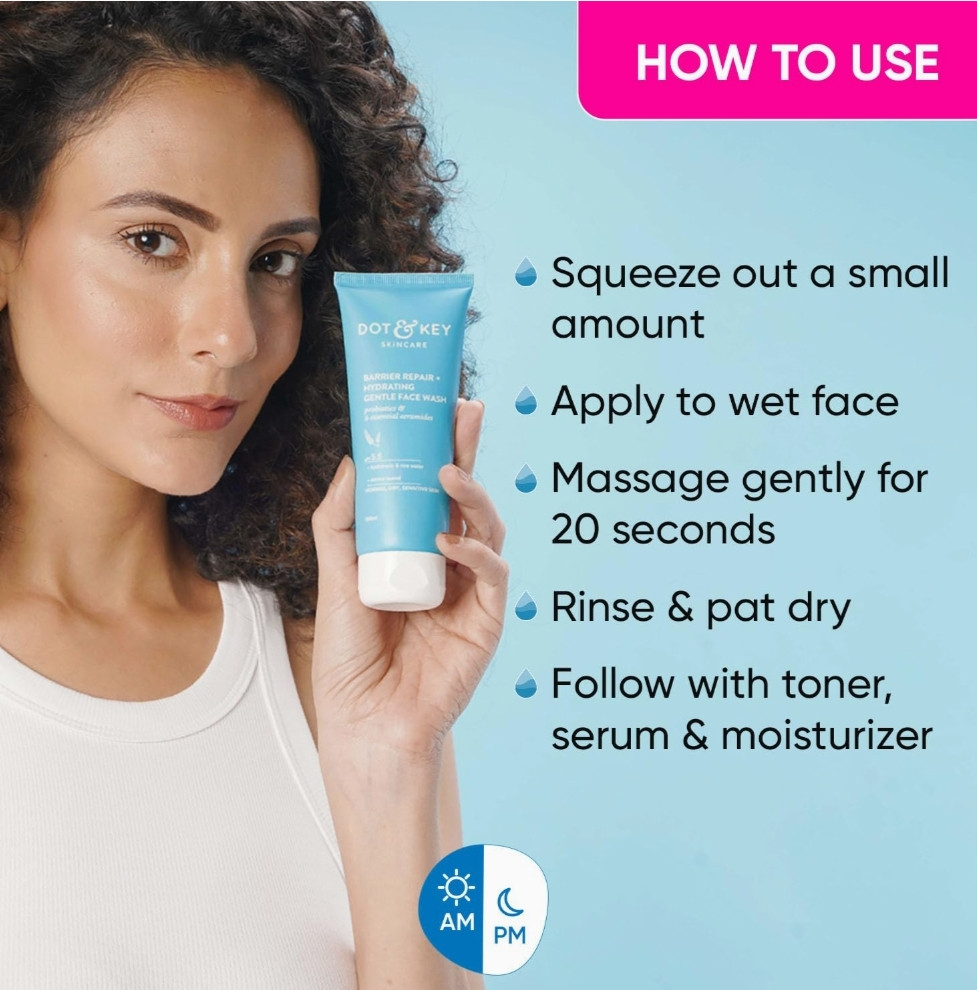DOT & KEY Barrier Repair + Hydrating Gentle Face Wash With Probiotic| Ceremide Face Wash | Face Wash For Dry Skin,Normal Skin&Sensitive Skin | Gently Cleanses Skin From Dirt & Oil For Unisex, face was