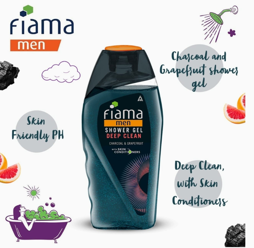 Fiama Men Body Wash Shower Gel Deep Clean, Body Wash for Men with Skin Conditioners and Goodness of Charcoal & Grapefruit for Clean & Clear Skin, Mens Moisturising Bodywash for Dry Skin