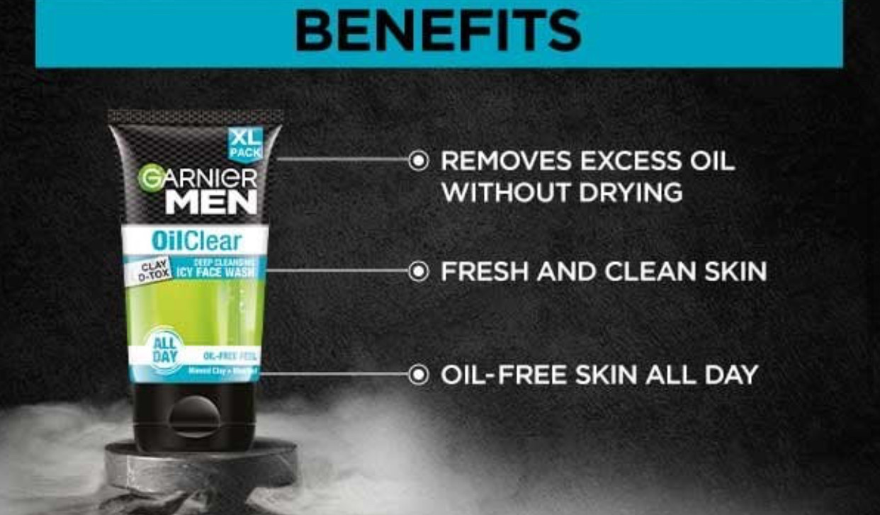Garnier Men Oil Clear Clay D-Tox Deep Cleansing Icy Face Wash