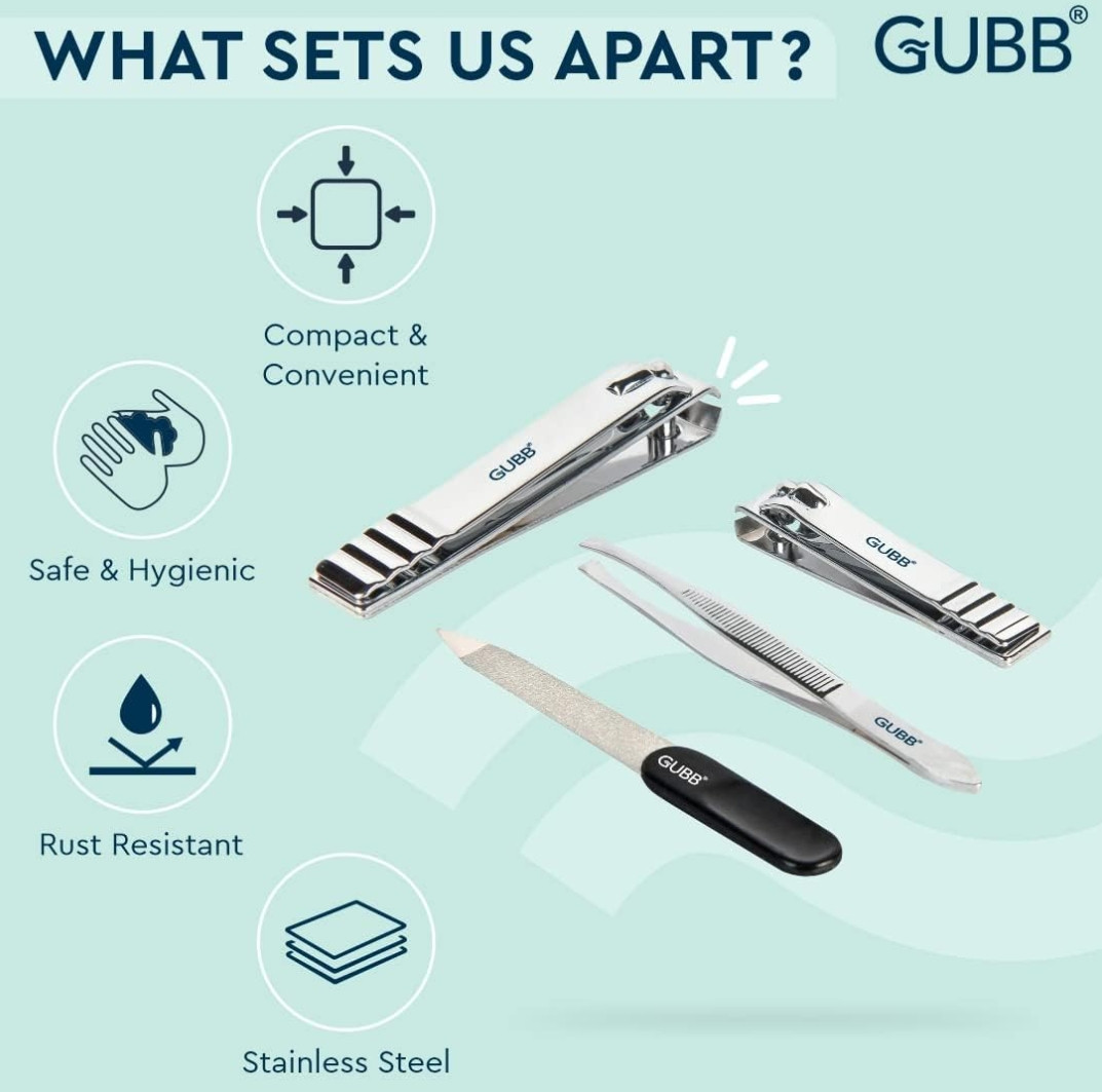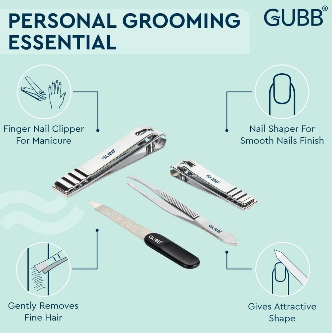 GUBB Nail Care Kit - Toe Nail Clipper, Finger Nail Cutter, Nail Filer & Flat Tweezer | Nail Clipper For Manicure, Nail Shaper for Smooth Nail Finish, Rust Resistant - Sharp & Durable Edge