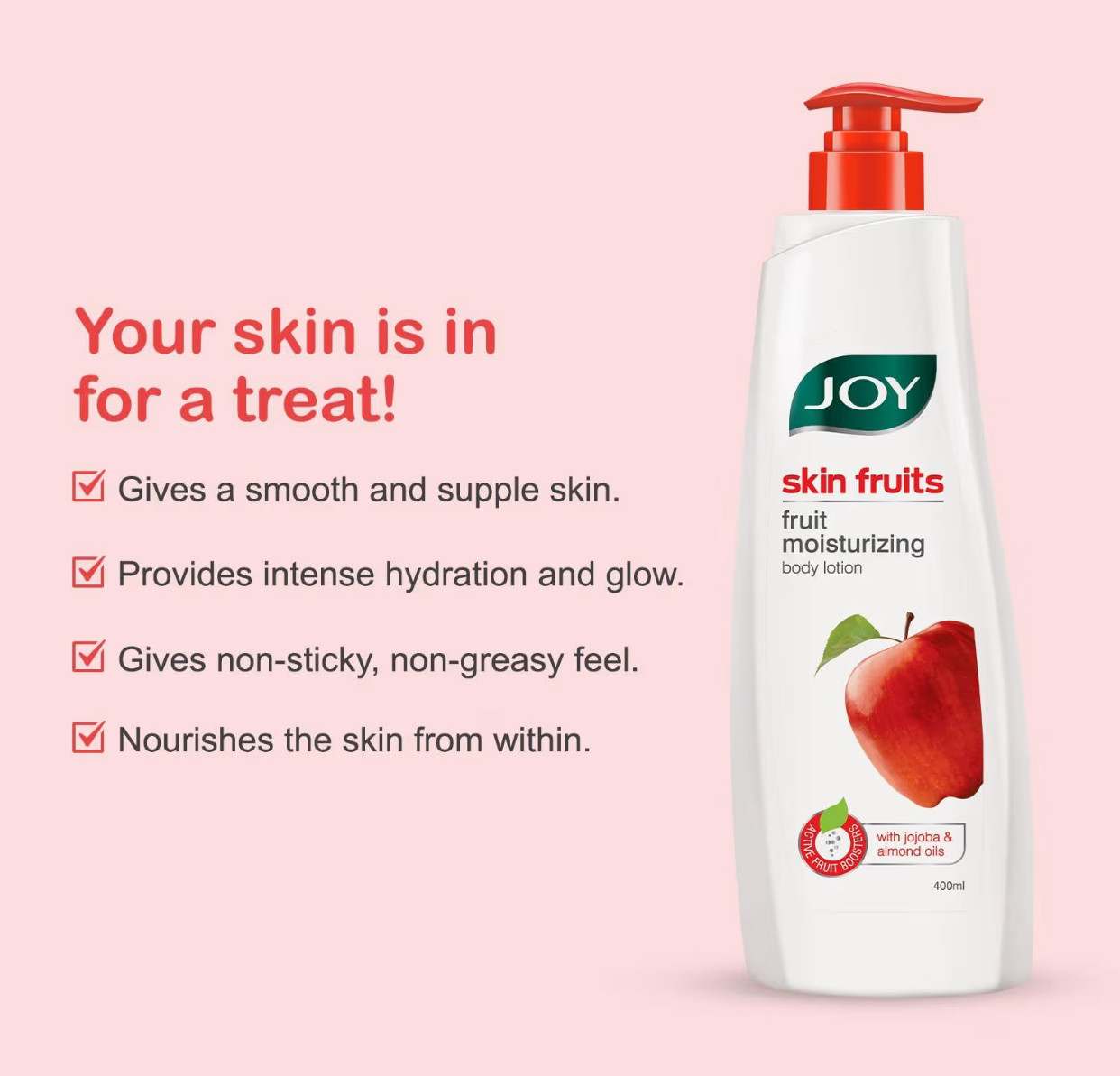 Joy Skin Fruits Moisturizing Body Lotion - Lightweight, Non Sticky & Non Greasy (400ml)