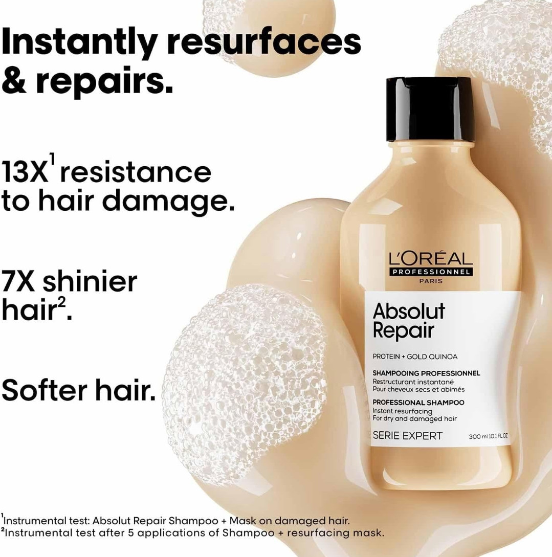 LOREAL PROFESSIONNEL PARIS Absolut Repair Shampoo For Damaged & Weakend Hair, 300ML |Professional Hair Repairing Shampoo|Hair Strengthening Shampoo