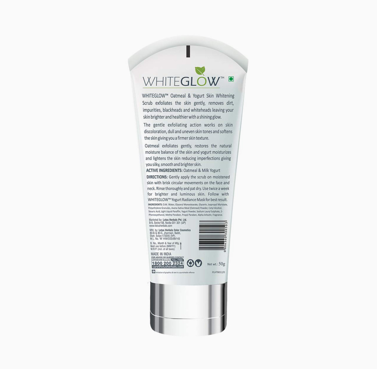 Lotus Herbals Whiteglow Oatmeal and Yogurt Skin Scrub | Oatmeal and Milk Yogurt | 50g