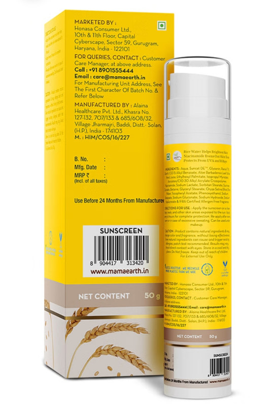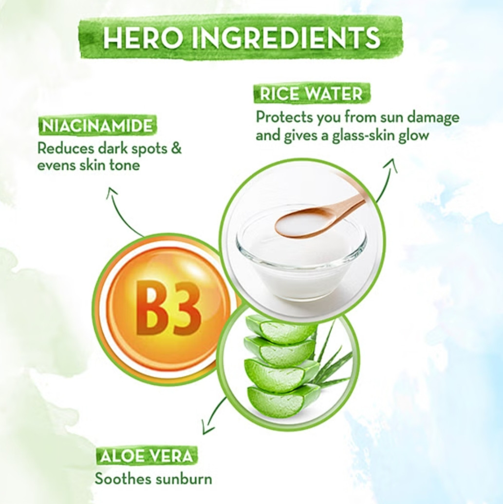 Mamaearth Rice Water Dewy Sunscreen with Rice Water & Niacinamide | Gives SPF50 & PA++++ Protection 50g