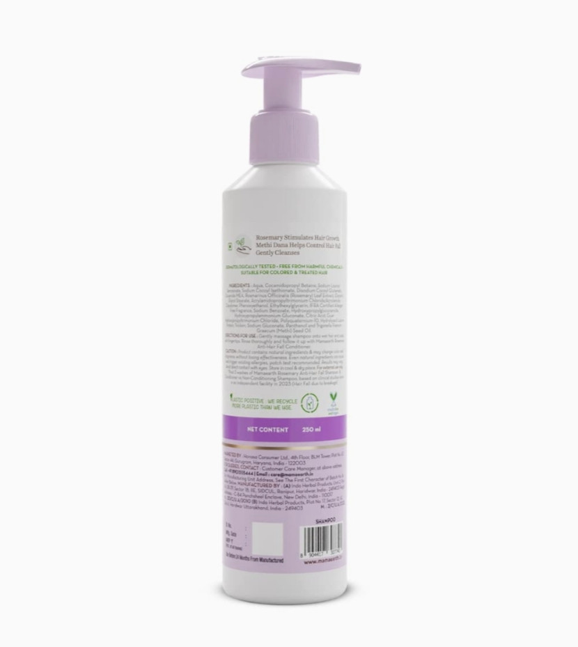 Mamaearth Rosemary Anti Hair Fall Shampoo with Rosemary & Methi Dana for Reducing Hair Loss & Breakage- 250 ml |