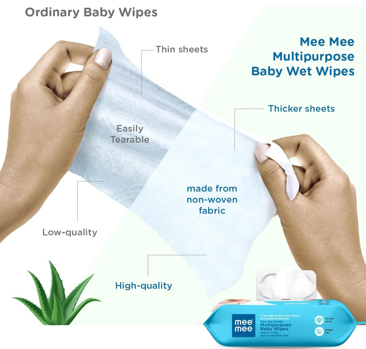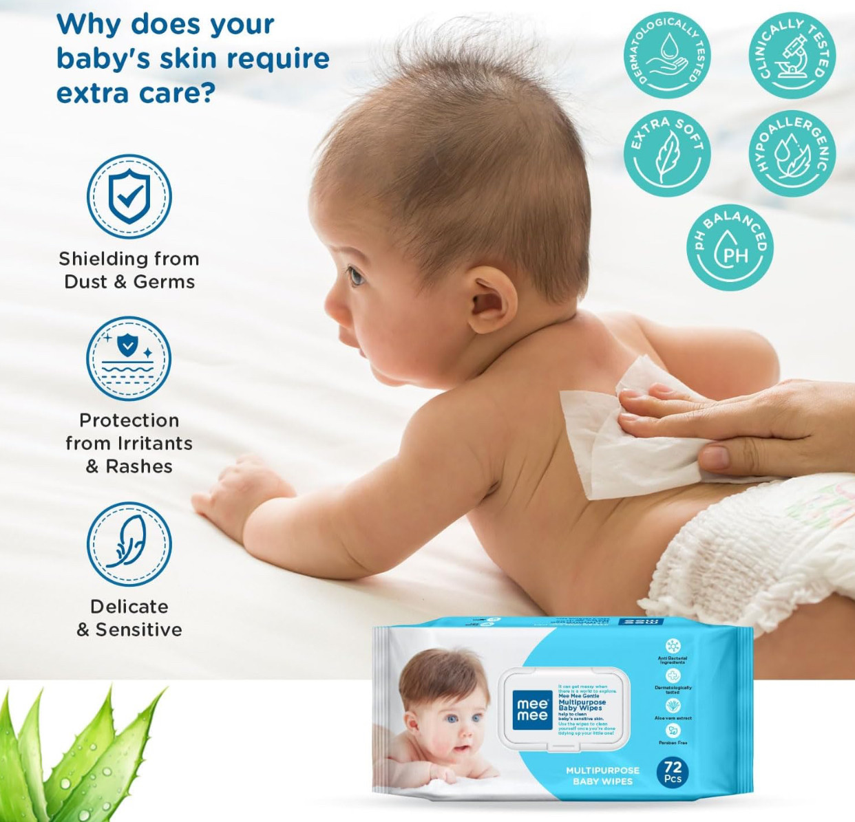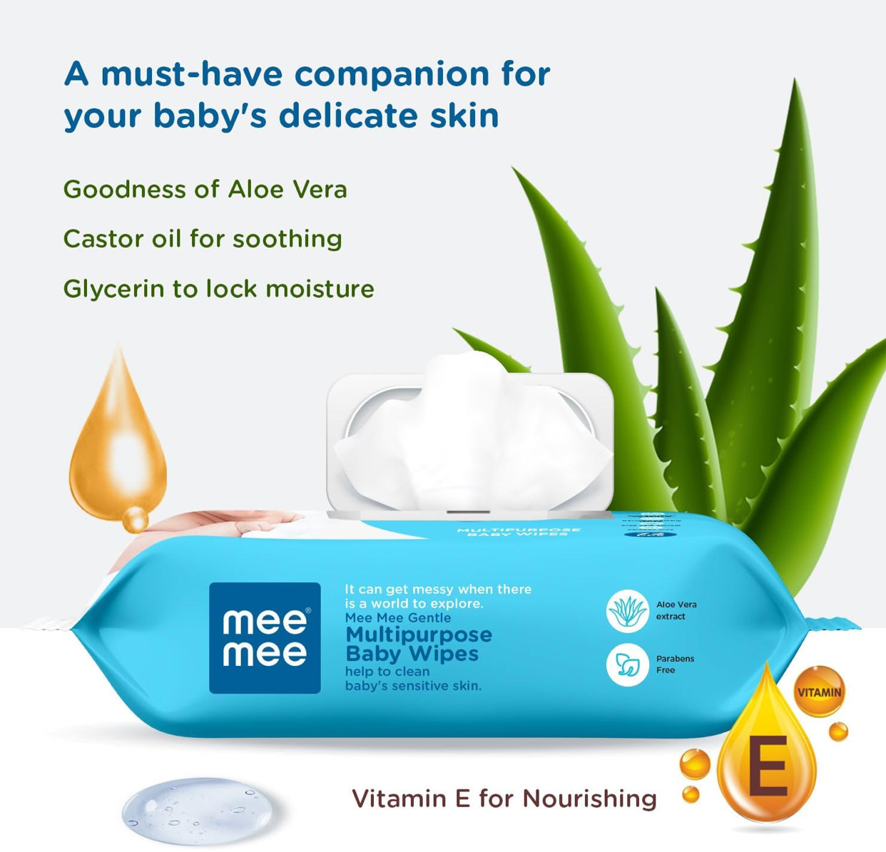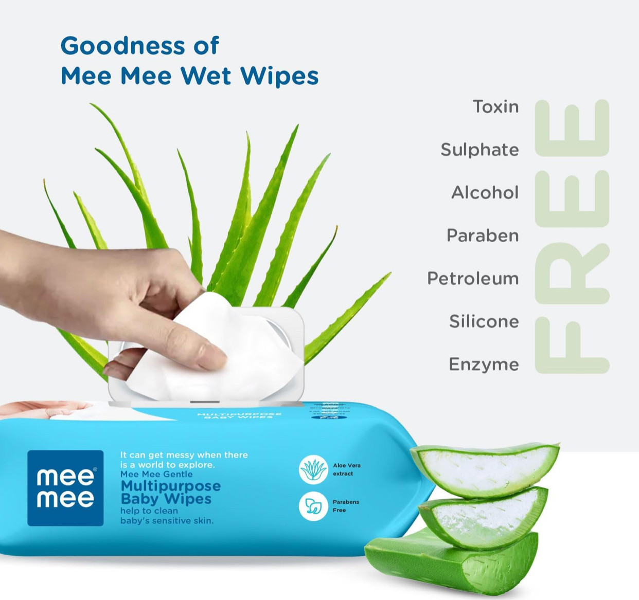 Mee Mee Soft Gentle Baby Wet Wipes (72 Wipes) Pack of 1 | Infused with Aloe Vera and Vitamin E | Paraben & Sulfate Free | Cleansing Wipes | Wipes for Babies