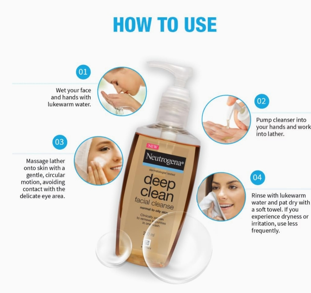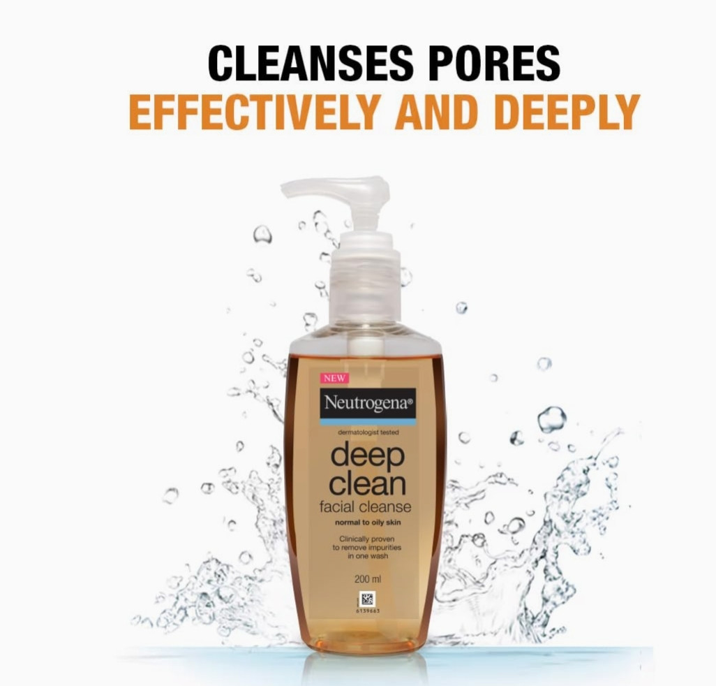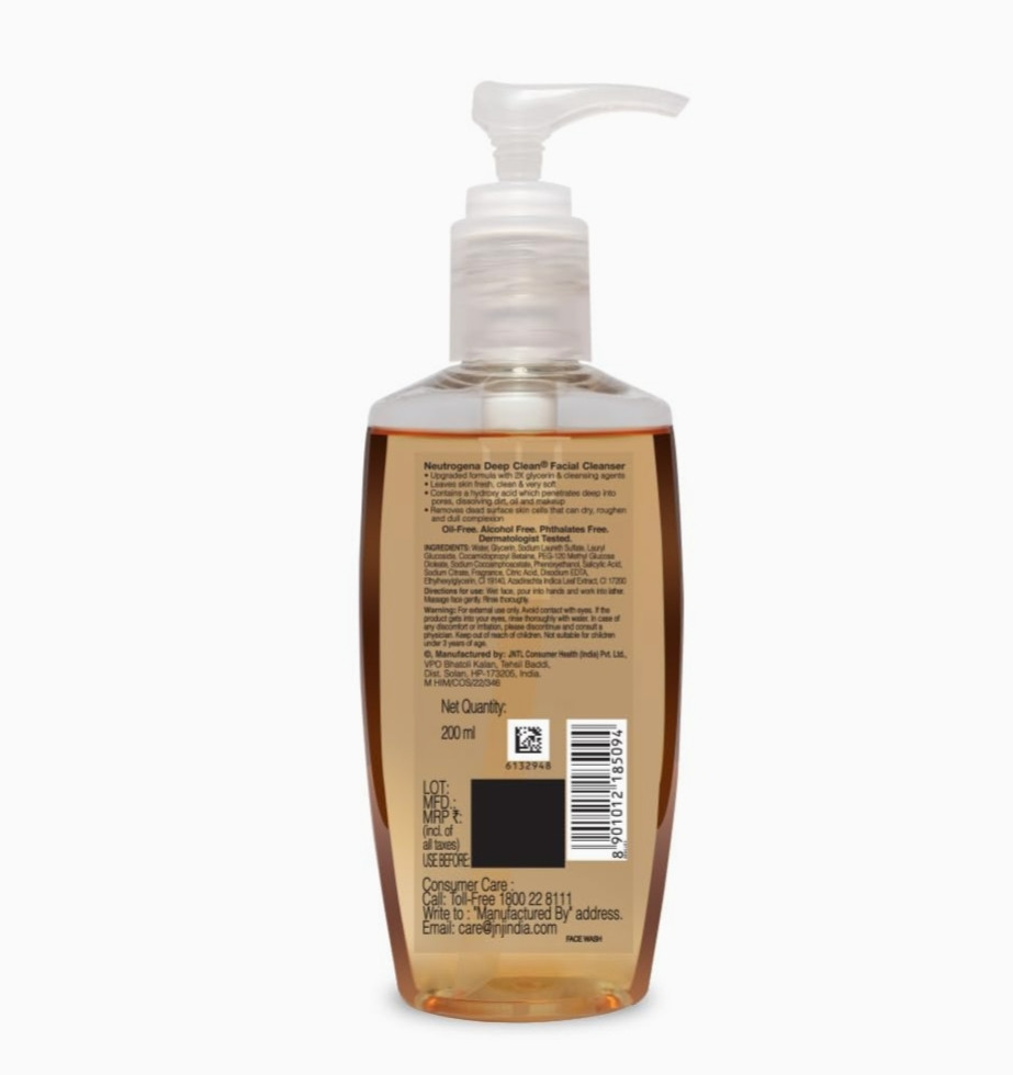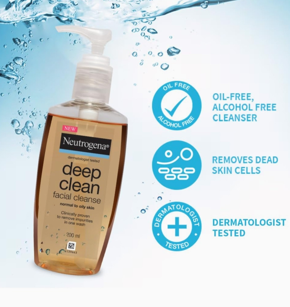 Neutrogena Deep Clean Gentle Facial Cleanser | 2x Glycerin & Cleansing Agent | Alcohol-Free | Dermatologist Tested | Normal to Oily Skin | For Men and Women | 200ml