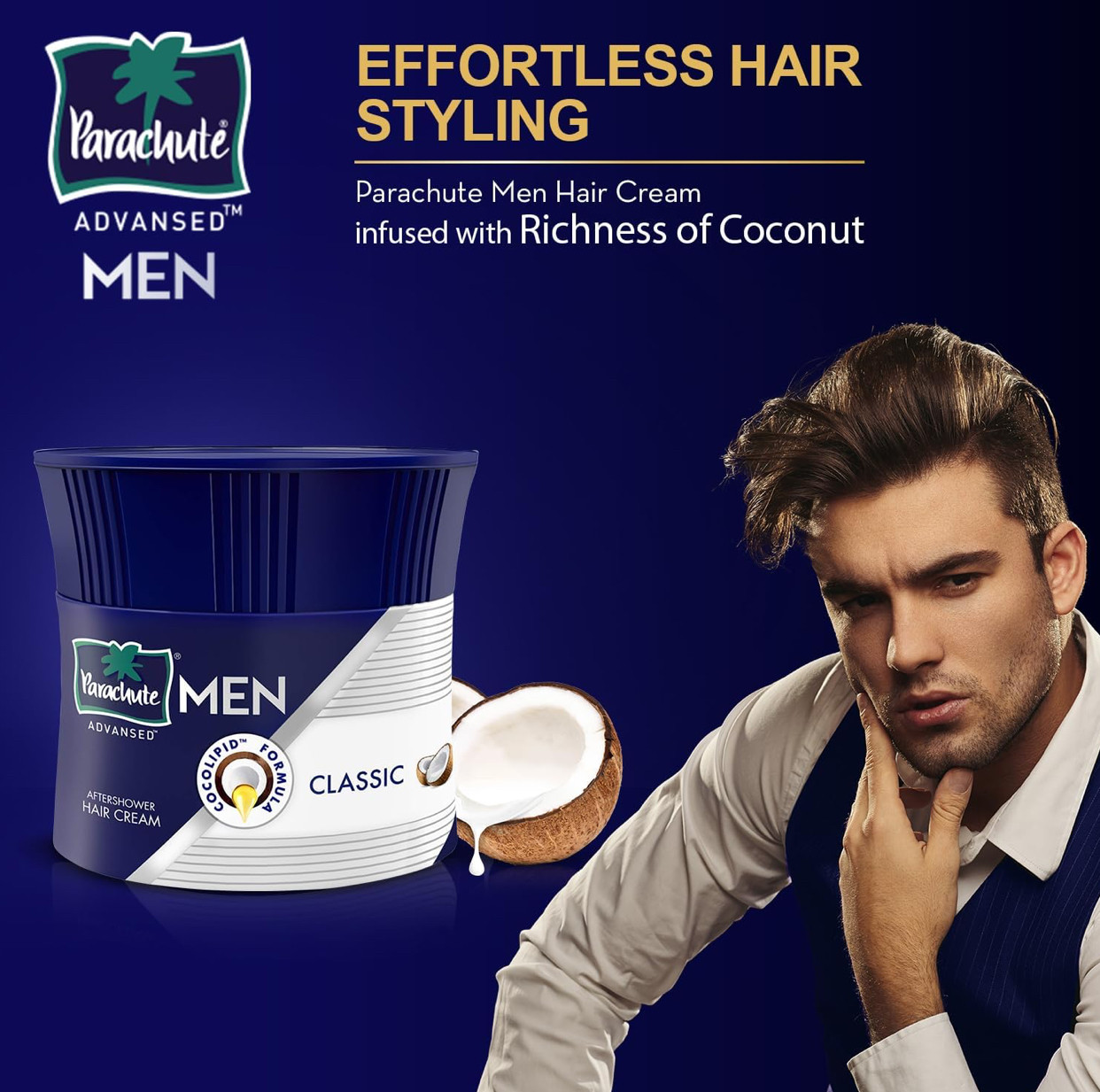 Parachute Advansed Hair Cream for Men | Hair cream after shower | Coconut goodness | Moisturizes and strengthens hair | For soft and smooth hair | Non-sticky | 100g