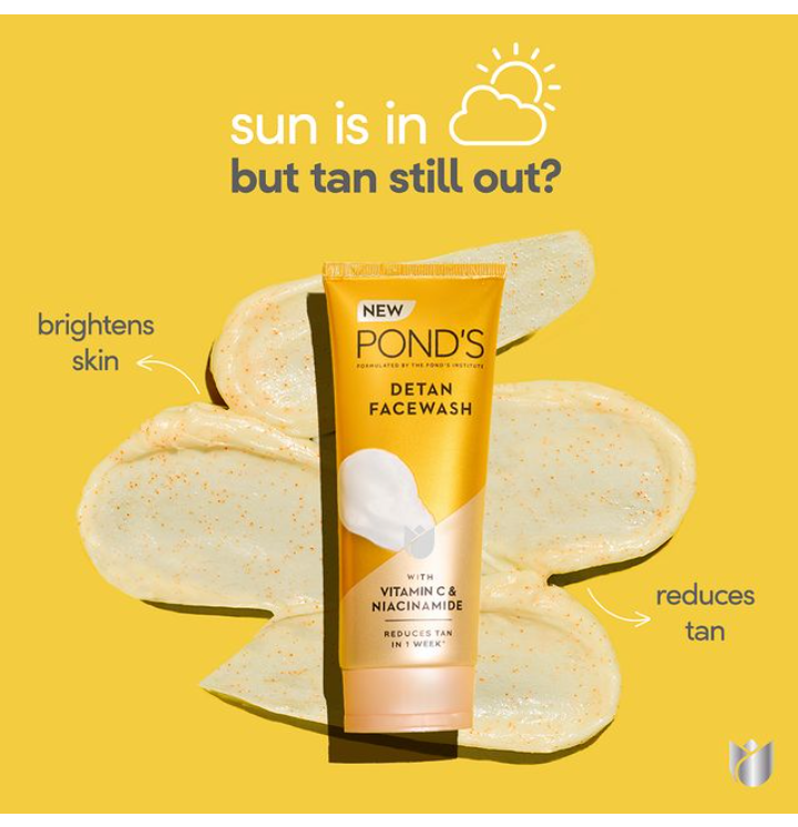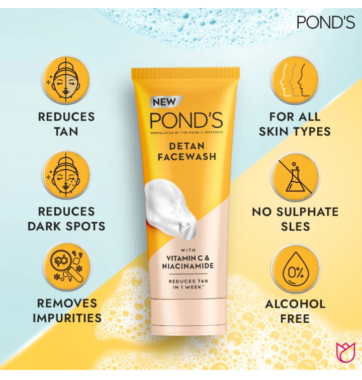 Ponds De-Tan Face Wash With Niacinamide & Vitamin c Reduces Tan in 7Day's For All Skin Type Face Wash 50g