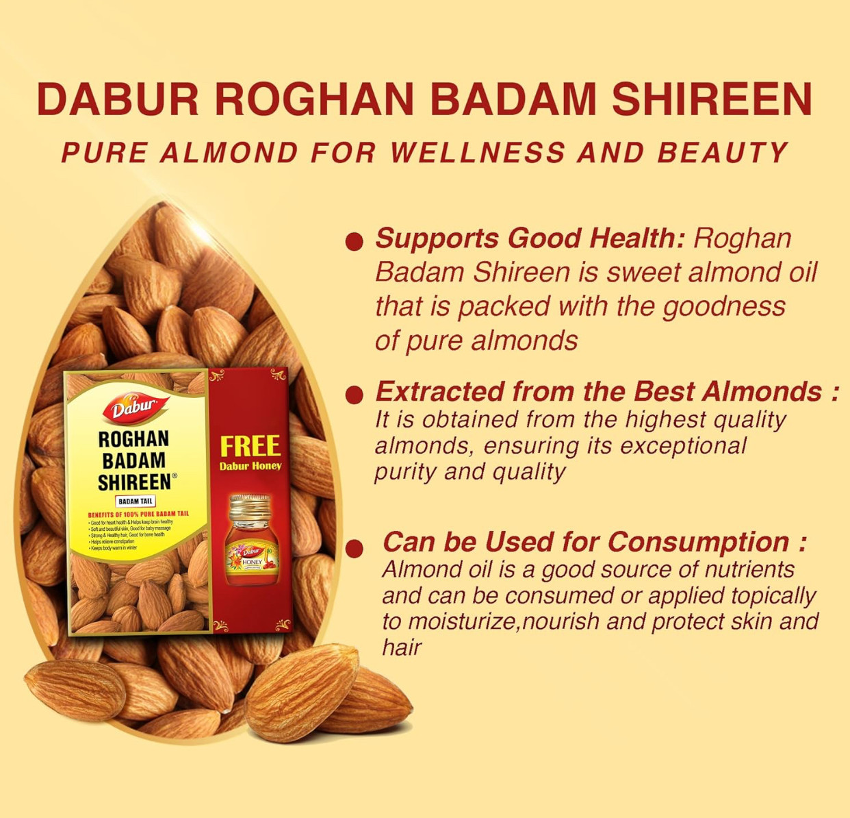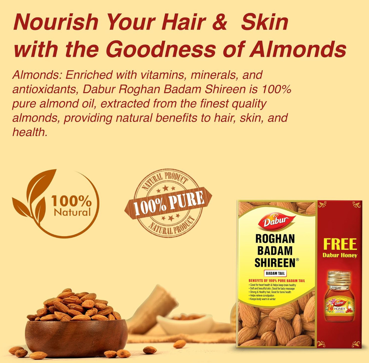 Rogan Badam Shireen 100% Pure Almond Oil 25ml + 20g Honey Free Worth RS/-20