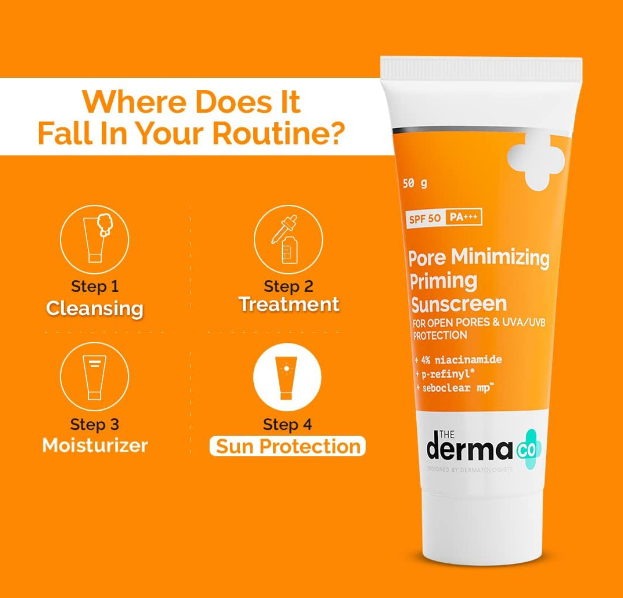 The Derma Co Pore Minimizing Priming Sunscreen With Spf 50 & Pa+++ For Open Pores & Uva/Uvb Protection - 50G All Skin Type