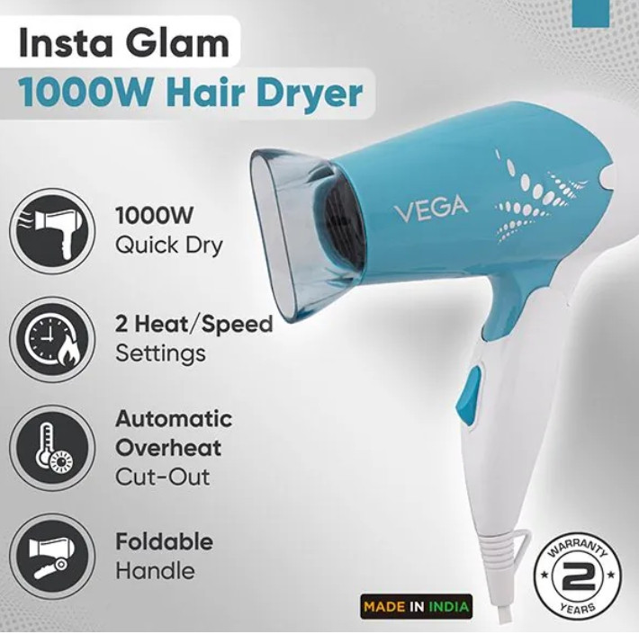 Vega Insta Glam 1000 Watts Hair Dryer - VHDH-29
