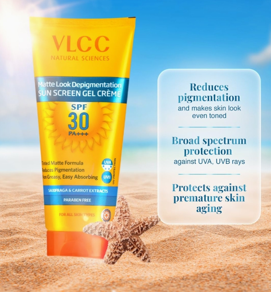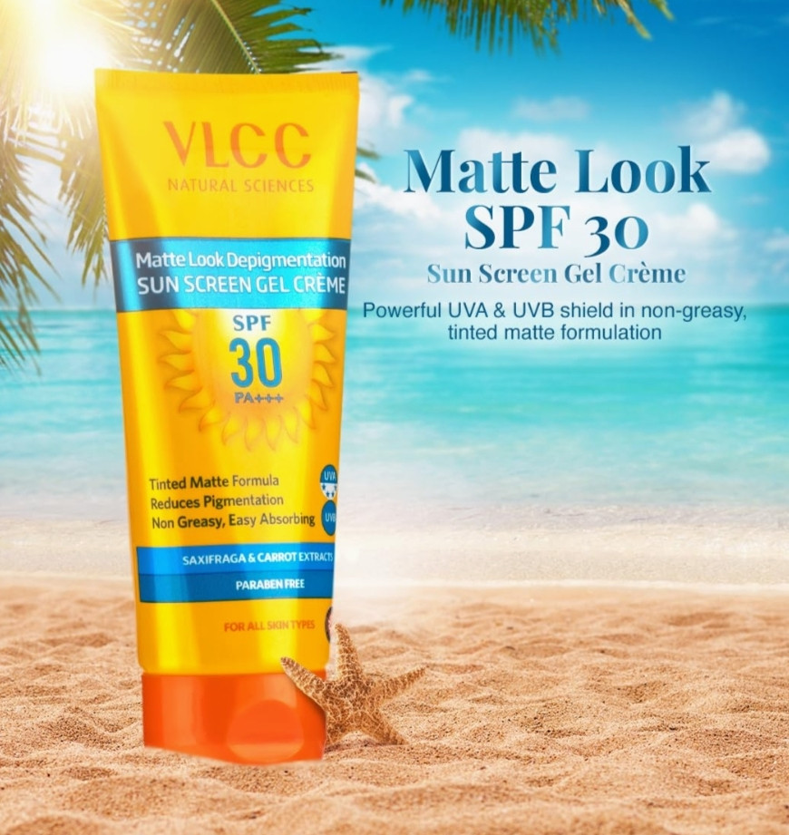 VLCC Matte Look Sunscreen Gel Crème SPF 30 PA+++, Reduces Pigmentation, Non-Greasy, 100gm