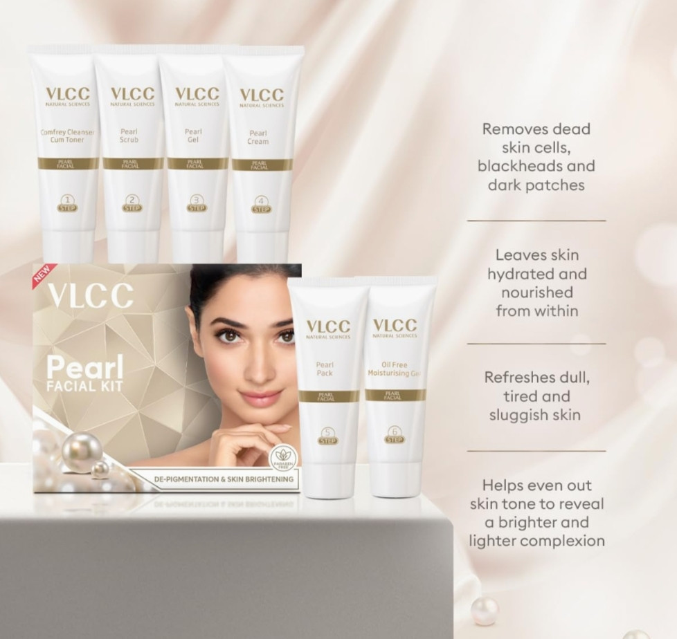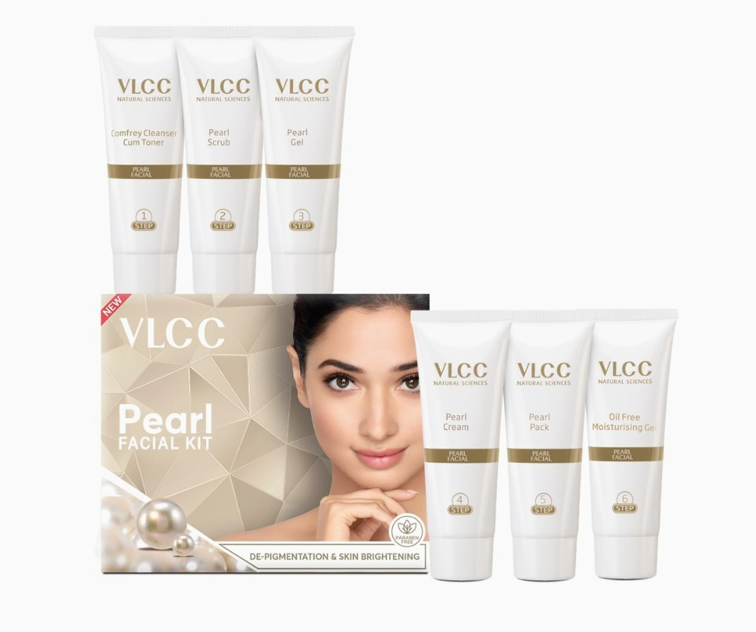 VLCC Pearl Facial Kit - 60g | Luminous and Radiant Skin | At Home Facial with Pearl Extracts, Sandalwood, Turmeric & Aloe Vera | Tan Removal Facial Kit.