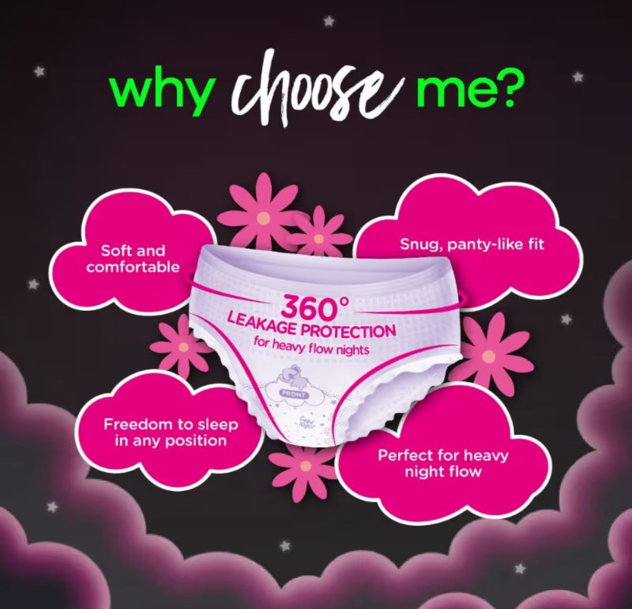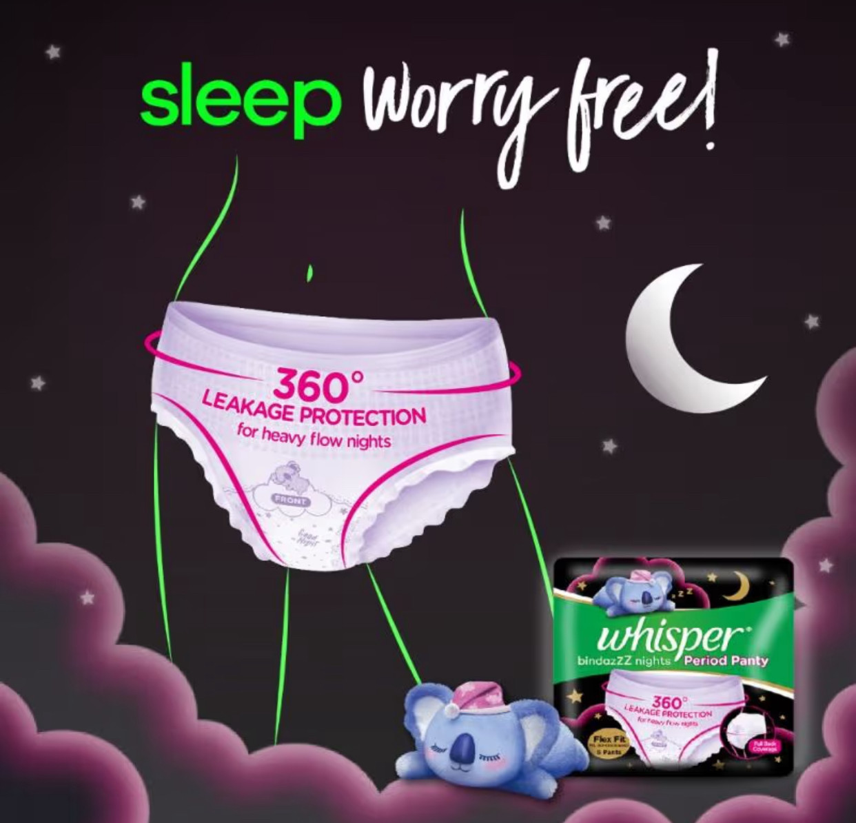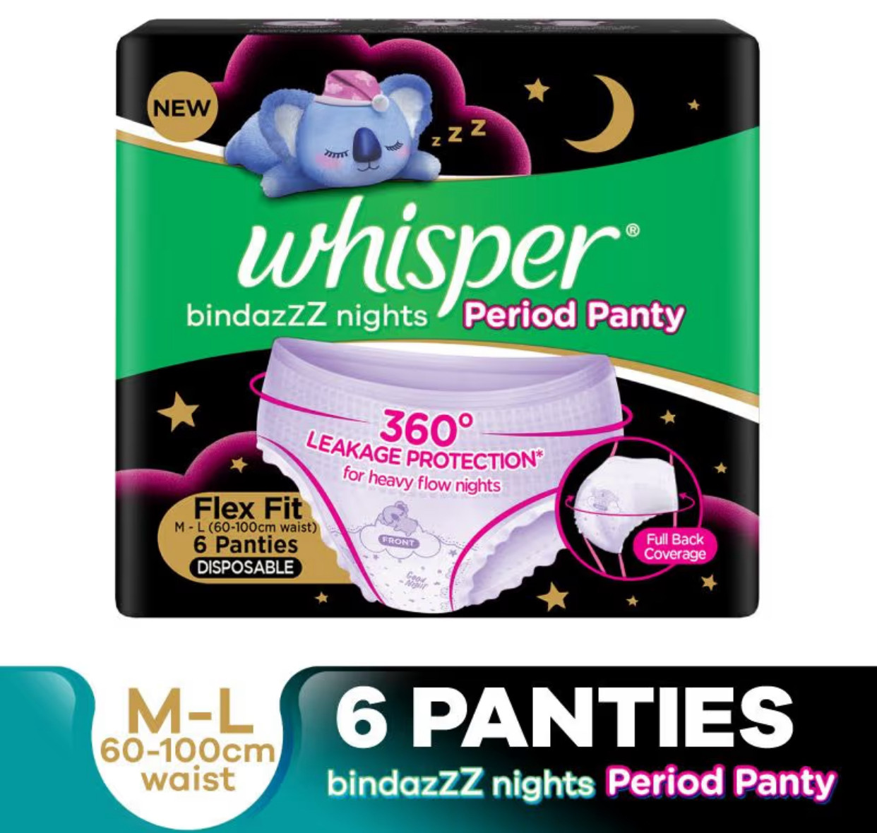 Whisper Bindazzz Night Period Panty for Heavy flow- 360 degree leakage protection, 6 M-L Panties