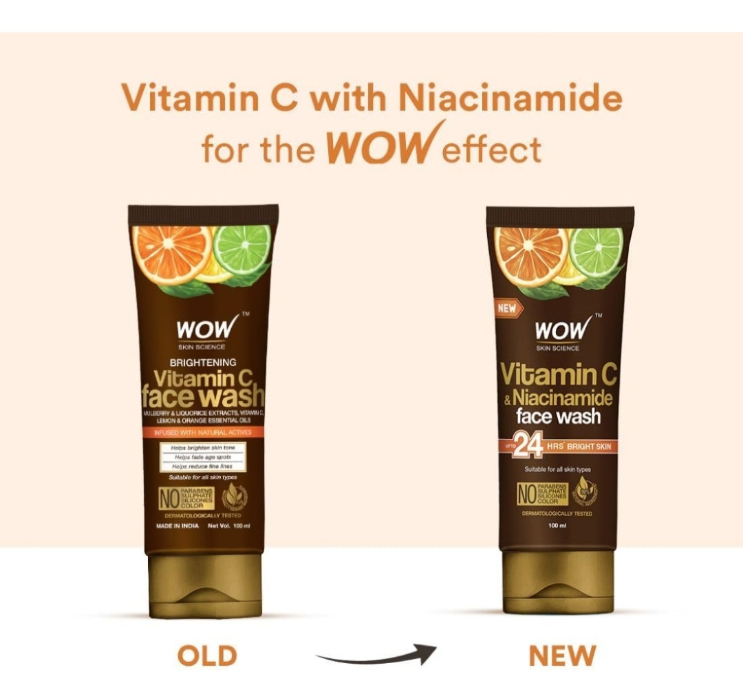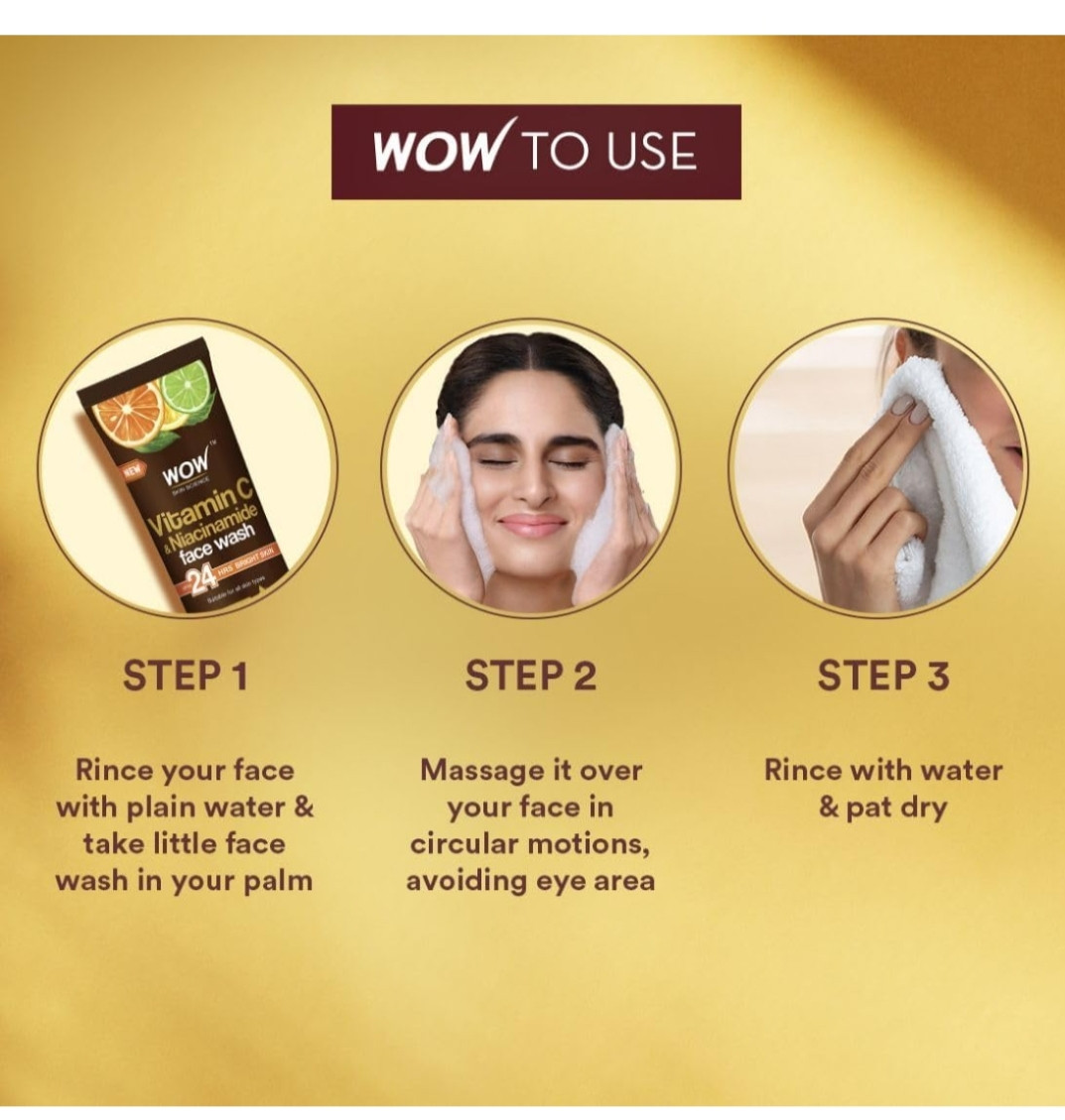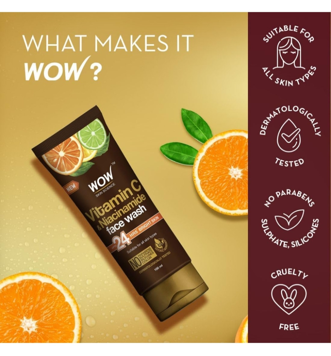 Wow Skin Science Vitamin c & Niacinamide Face Wash upto 24hrs Bright Skin For All Skin Types 100ml