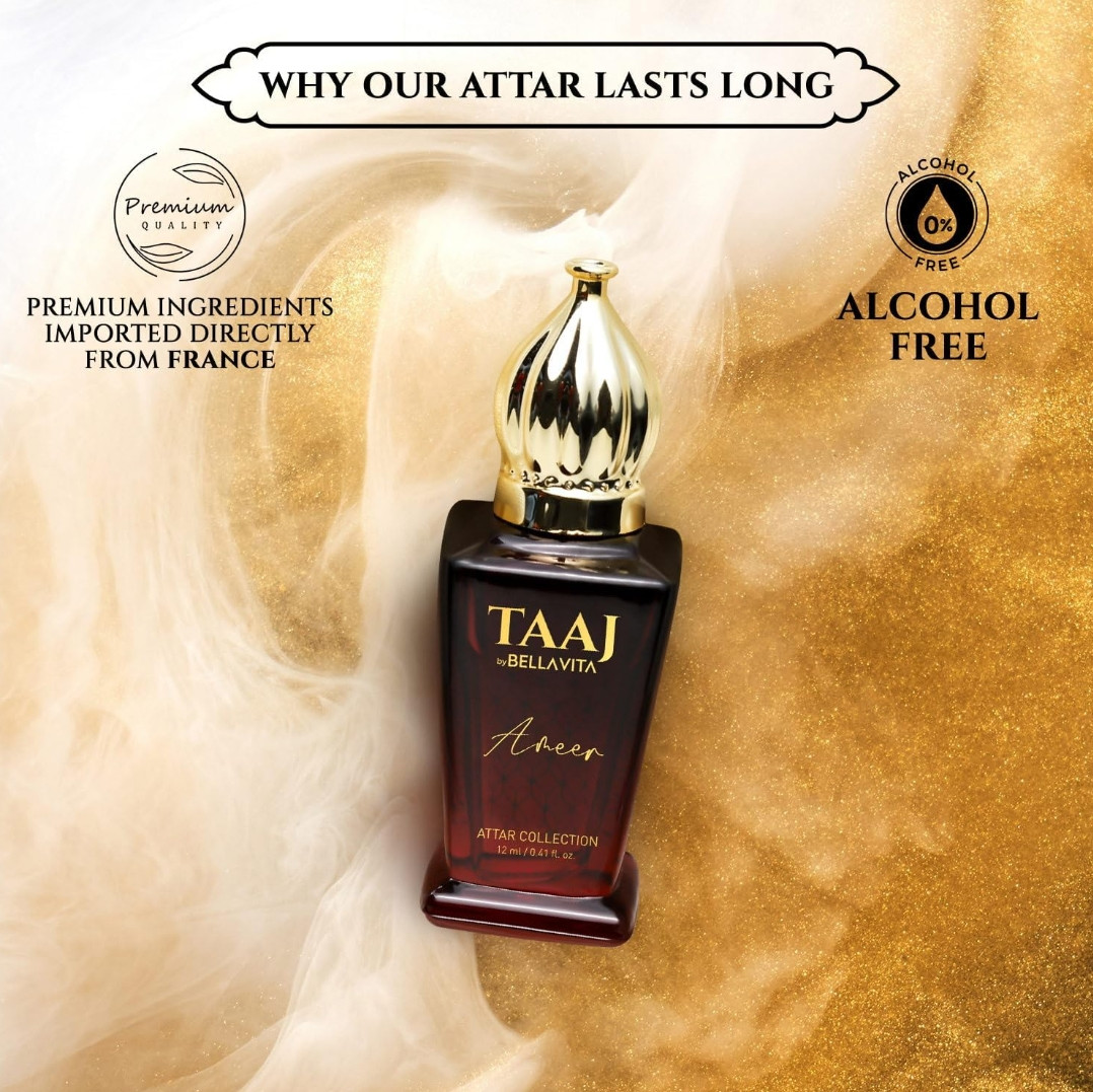 Bella Vita Luxury TAAJ Ameer Attar with Lemon, Tonka, Vanilla & Patchouli for Men and Women|Alcohol-free Roll On, Musky Long Lasting Fragrance, 12 ML