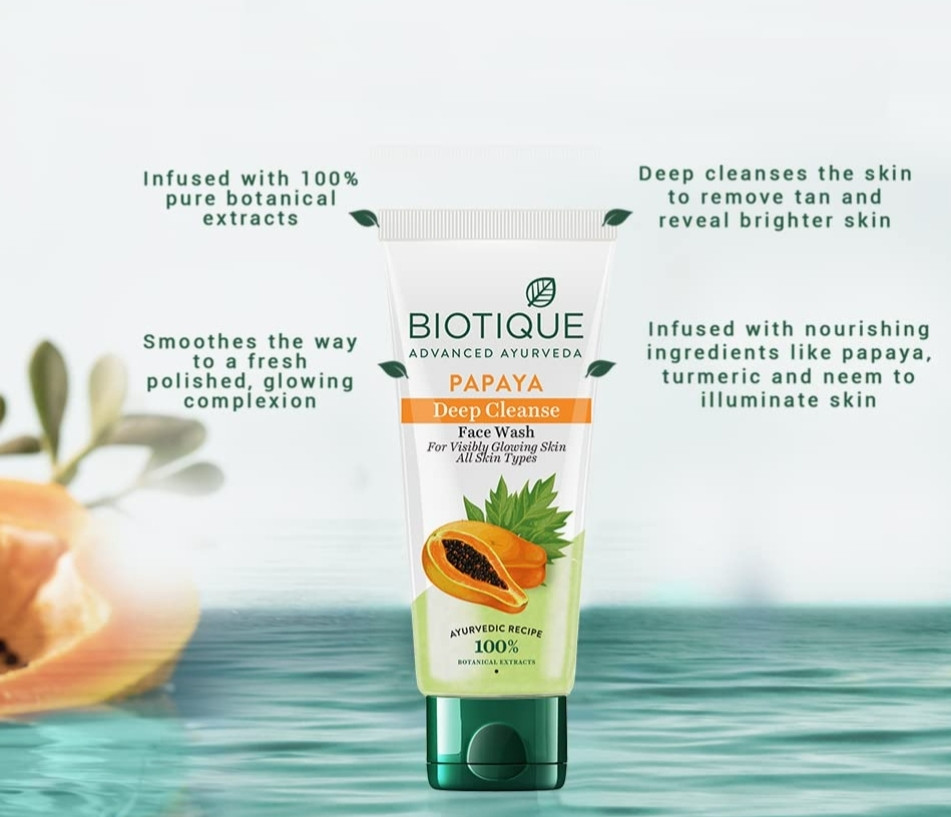 Biotique Papaya Deep Cleanse Face Wash | Gentle Exfoliation | Visibly Glowing Skin | 100% Botanical Extracts| Suitable for All Skin Types |