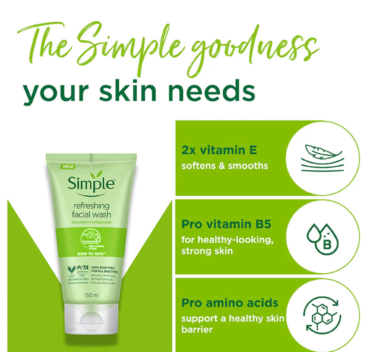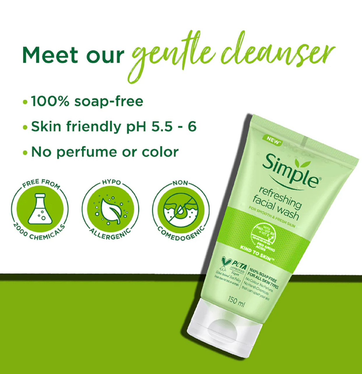 Simple Kind Skin Refreshing Facial Wash 100 ml | 100% Soap Free Facewash | For All Skin Types