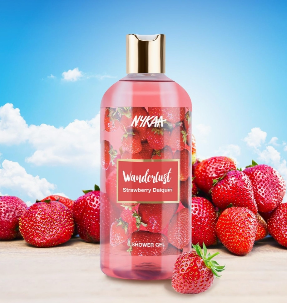 Wanderlust Strawberry Daiquiri Shower Gel, 300 ml| Nourishes & Hydrates| Gentle Cleanser| Sweet Smell of Strawberry |Enriched With Aloe Vera| Paraben-Free, Vegan Formula| Suitable for All Skin Types